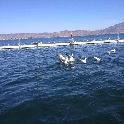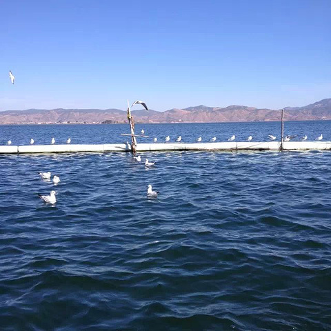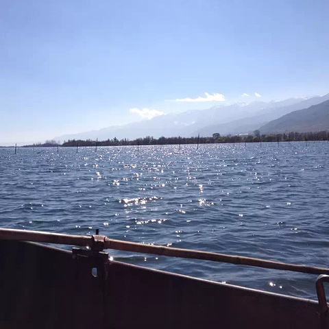 坐在船上看洱海,微风吹拂,很是惬意。
