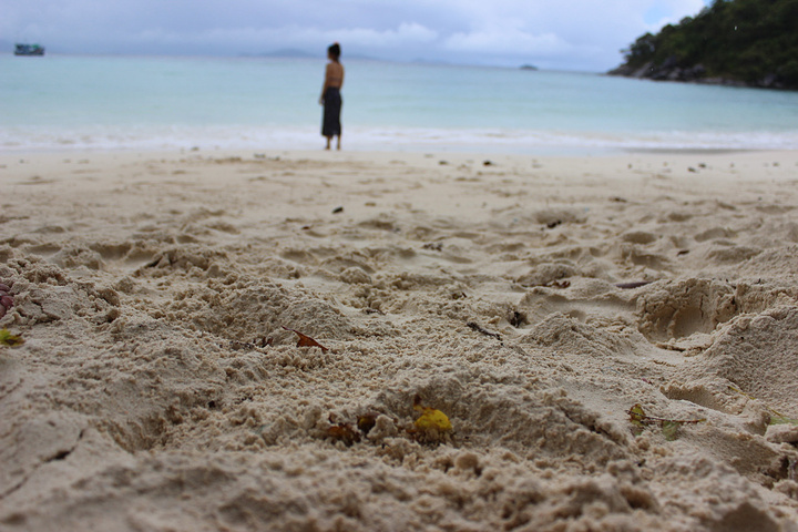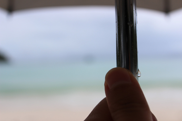 潜水告一段落,不懂的问我,视频在我微博也有。潜完水大概10:30。11点前必须要check out 所以,先退房,把行李放那边寄存。出去看一下另一个酒店的海滩 拉布里酒店的saim bay 海滩。还在下着雨。