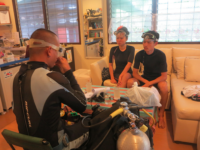 现在店里面学习半个小时,然后来到海边,穿上装备! 重点重申!这里要说一下的,如果你英文好,你可以听懂教练的说的重要的地方,不需要全懂 八九不离十就OK ,当然他会做动作给你看。