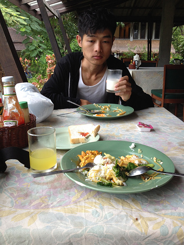 前一晚已经问了餐厅的一帅哥:where could i see the sunrise ? 告诉我就在无边泳池旁边,我说那边有那么多免费的沙滩椅呢,原来提供看日出的,但是雨下了一夜啊 ,出泡汤····吃早饭补充能量吧。