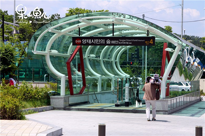新村站乘坐地铁2号线。在乙支路三街换乘3号线,乘坐到良才站下车,然后,换乘新盆唐线,坐一站,到良才市民之林站下车,然后4号出口出,直行走大概3分钟就是了。