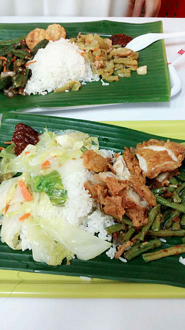 【价格】 【地址】牛车水 【电话】 【其他】这些都是配菜。这家椰浆饭在当地很有名气,很多人都知道的,就在牛车水的印度庙附近,椰浆饭就是米饭加入椰浆来煮,使得米饭有椰香,配菜自选,有点像家里快餐店的感觉。来自游记新加坡