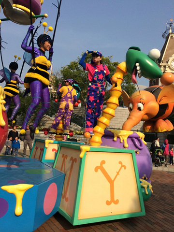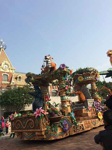 每天下午3:00开始,(注意看乐园时间表)从幻想世界与明日世界的交界通道上出发,在乐园指南的地图上有标示出巡游路线,只要巡游路线上等着,就能看到精彩的花车表演。不过最佳观赏位置,还是睡公主城堡的回旋花园。最好是提前半小时左右就到那附近,在路旁找地儿席地而坐,等着看巡游吧。这是来迪士尼不容错过的一个狂欢,单是听音乐,就足以让你兴奋起来了!我们是两天看了两次,一次近看一次远观。 附上视频链接哦 http://v.youku.com/v_show/id_XODk2MDEyOTgw.html
