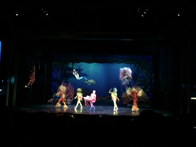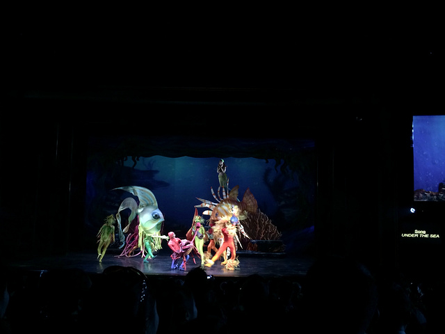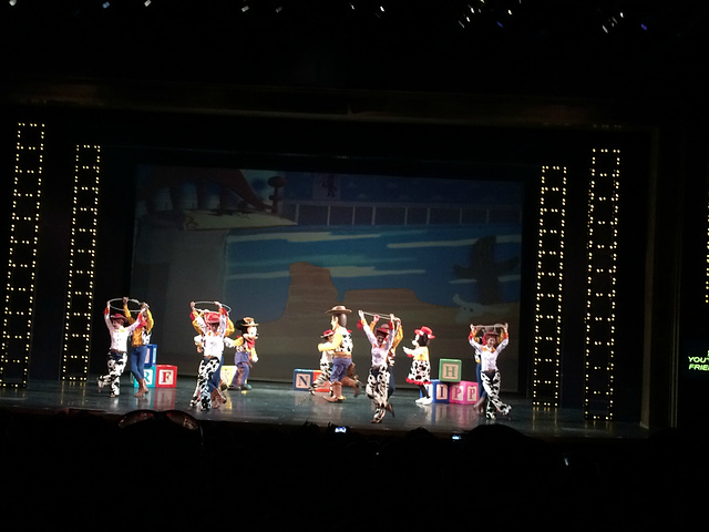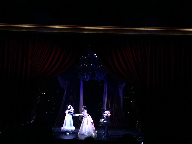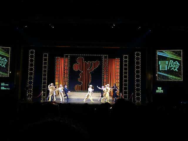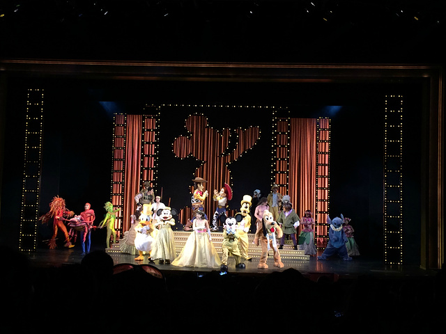 在幻想世界的故事剧场上演,每场30分钟,观赏的最佳位置是前排中间但靠近人行通道的位置,因为左右两侧的通道上,会有部分演员从那儿经过,你可以近距离地接触他们。米奇金奖音乐剧是以颁奖礼形式将迪士尼的大部分经典好剧汇整成出音乐剧,眩目的舞台布景变化万千,伴随着各个电影的主题曲或插曲,融入了充满戏剧性的歌舞、动画、体操、杂技及各种特效,如一场狂欢盛宴般让你看得目不转睛,再配上一些道具,比如美人鱼出场时,剧场里飘飞的泡泡,还有结束时从天而降的金银丝带,都让你除了“哇”,就再无其他感叹词了。同样,如果你看过这些经典好剧,就会更有融入感。如果你听不懂的话,可以选择坐在左侧,左边的字幕上中文的,右边的字幕则是英文的。附上视频链接http://v.youku.com/v_show/id_XODk1NzA2NDQ0.html