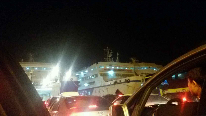 登船,四大一小孩,565元人车过海,7.33分买的票,8.37登船,10.38分开船,12.10到海口