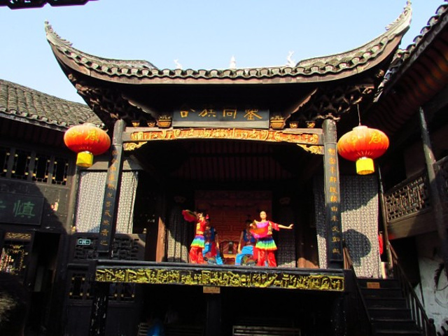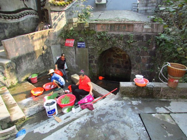 出古城北门城楼,来到沱江边,便有一排古跳岩映人眼帘。这是古城人气最旺的