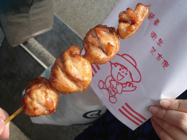 这串东东叫做七里香,吃了一口还不知道它是啥,感觉是鸡肉,后来才发现,这是一串鸡屁股。