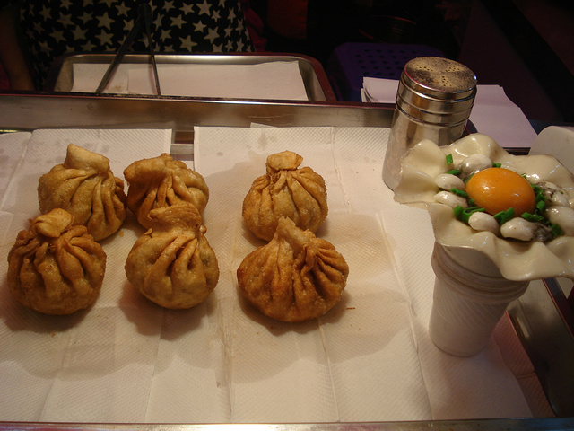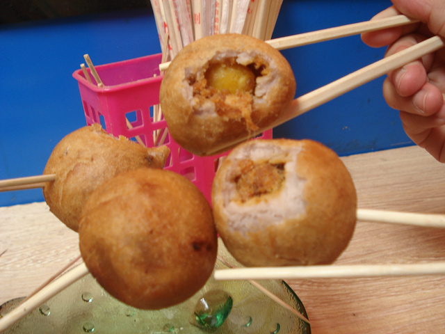在码头对面,往中山路方向走,有一条美食街。我们就在这里解决午餐咯。这是一个蚵仔煎包,里面有蚵仔和鸡蛋,虽然要20RMB一个,但是好好吃哦