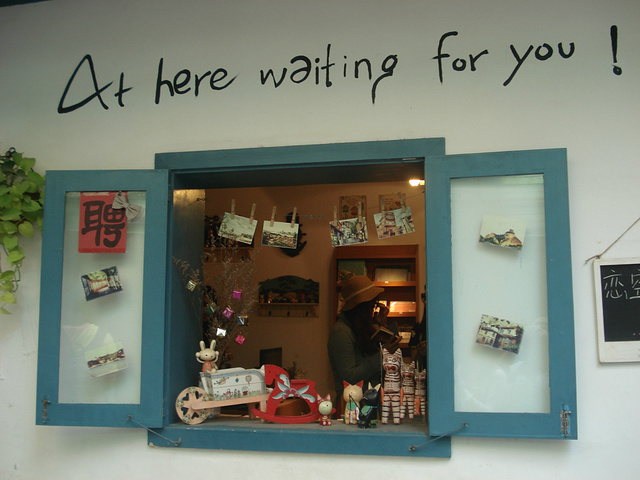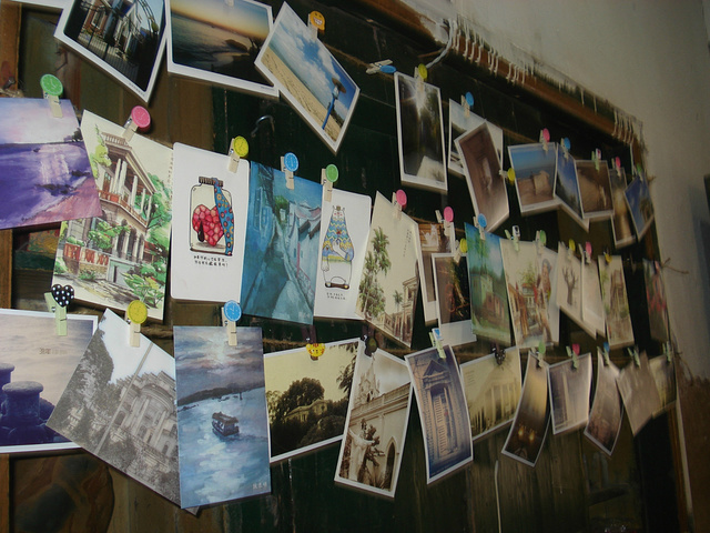 在曾厝垵,我们进了一家小店,挑了明信片。