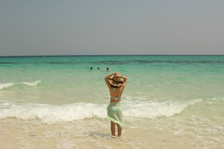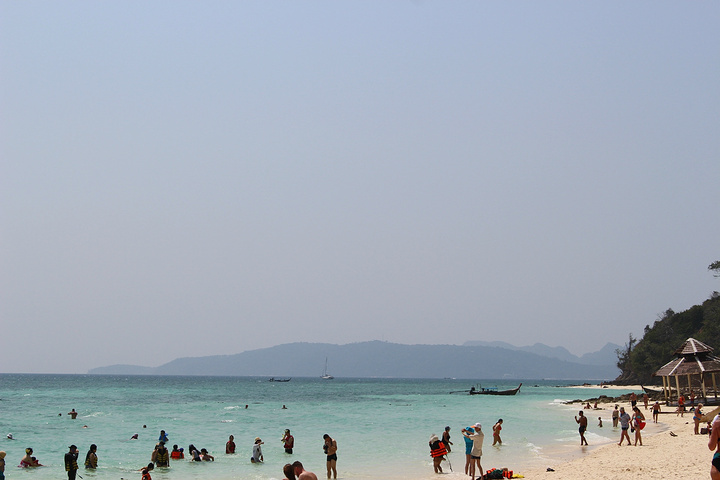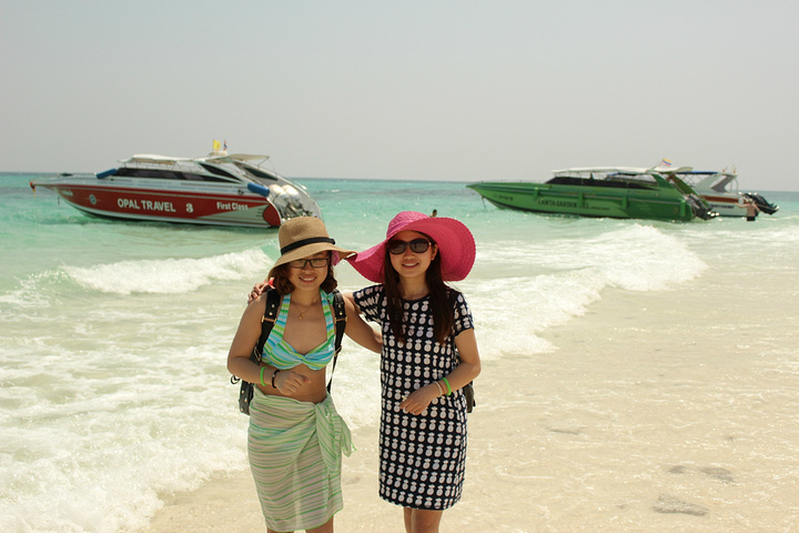 第三天了,终于可以出岛了。但是皮皮岛其实真的好远,坐快挺过去也坐了一个小时啊,再加上去码头花的时间,到了皮皮岛就直接吃午饭了。说也真不巧,那几天我身体不适,下水不方便,就没下去浮潜,虽有遗憾,但是不后悔。出发前我自称从小在船上长大的,是真的,但是当船停止的时候,晃的我竟然晕船了。太丢人了。浮潜第一个地方是蚊子岛吧。不下水的就在船上玩,然后就去竹子岛吃午餐,所谓的午餐是自助餐,相当的难吃。但是那边的海水真的很美。离开竹子岛之后是去猴子沙滩什么的,就看看猴子,扔香蕉给他们吃,最后是去玛雅湾的沙滩呆了半小时,然后就走了。这么一天差不多也都是在船上度过啊,想想看要是整个跟团旅行,真的是好累啊。回到酒店还早,我们休息了会就去吃完饭了。