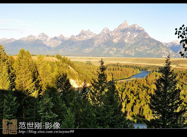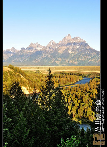 Snake River Overlook的出名是源于著名的摄影师Ansel Adams于1941年在这里留下了一张著名的黑白照片,这张照片在Jackson Lake Lodge大堂里还能看到。照片上,在巍峨的大蒂顿群峰前面,蛇河绕了一个漂亮的S弯,给人以强烈的视觉冲击与线条美感。