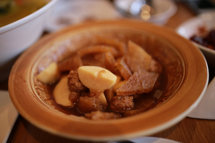 购物村的餐饮有谷雨宴餐厅、星巴克、咖啡店、意大利冰激凌店这几家,谷雨宴是农家菜,菜单的品种不是很多,人均价格在80-100,菜的口味偏甜。茶香鸡、银鱼炒蛋、鱼头汤、金牌小排骨这几个是特色菜。