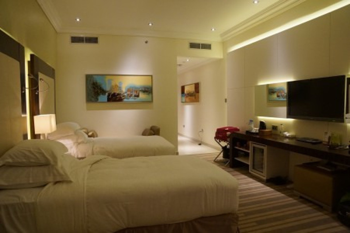 入住的迪拜奥利斯假日酒店(Auris PlazaHotel),是一家全新的五星级酒店,工作人员服务非常好,会关注客人的需求,他们的服务水准符合大家对五星级酒店的要求,不过看这大堂和客房的设计及家具感觉有点儿像四星级的,还有最好的优点就是离阿联酋购物中心(MalloftheEmirates)只有500米。而且周围路段晚上比较安静,所以睡觉会感觉更舒适一些。