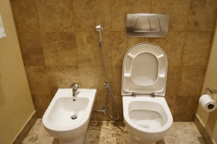 够大的洗手间,这是什么?这是一个坐厕,还有一个专用来洗PP的,看,上下都有一个专用花洒呢。