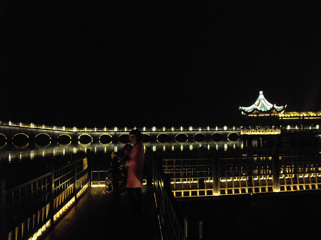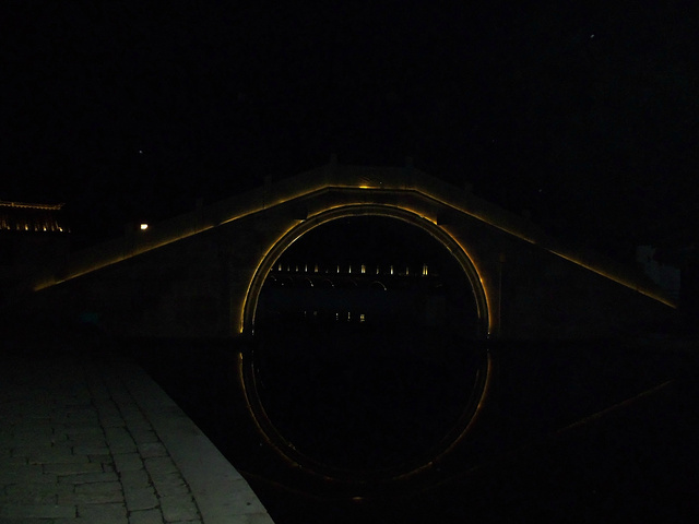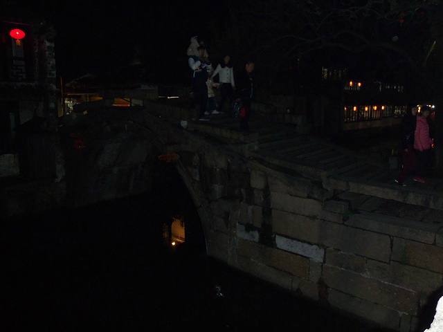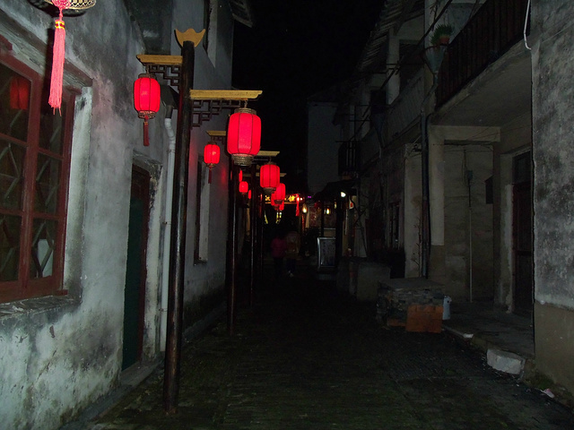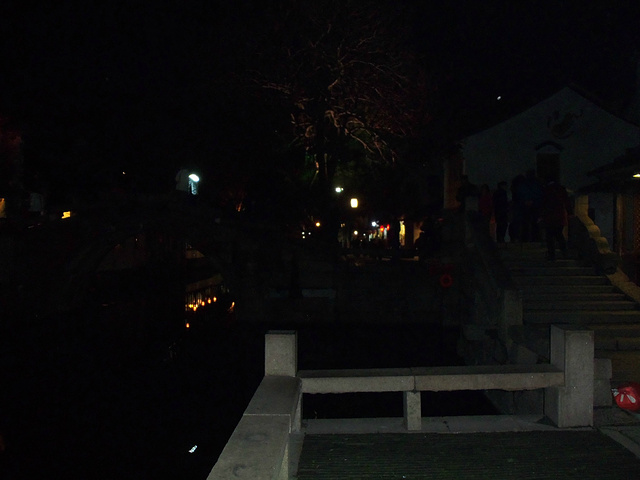 原本苏州乐园,临时改变方向,不知是对是错吧。察院场去观前街很近,酒店左拐直走就是观前街西,方向不变就是观前街东,出去就是临顿路。平江路和临顿路平行,中间有很多小弄小巷相接,其中大儒巷正对观前街东入口,初去的人不知道,现在知道吧。临顿路垂直白塔东路和干将路,平江路入口就是白塔东路,另一入口就是干将路,干将路旁边就是凤凰街,十全街,沧浪厅,网师园就在此,只因小弄小巷太多糊途,这正是苏州特点所在,韵味实足。观前街其是就购物街,和上海南京路步行街,武汉江汉路步行街,厦门中华路,所有旅游街道异曲同工,没有什么分别,观前街也是弄巷众多,稍不留神就丢了,有名太监弄就在街上,位于人民商场旁边,小吃购物,白天晚上人潮如涌,相当壮观。平江路商业中心也是八面玲珑,古色古香,青色小砖铺路,和江南小镇风格迵异,各地模仿能力太强大了,平江路河窄也能行船,水桥弄巷三大主题。上面说过平江路也分两段,东北街拙政园猴子林入口,一条老街比较怀旧,老苏州风貌,和七里山塘老街一样,映证历史文化,慢慢细走体会其中含意人文文化和建筑风貌;其次就是白塔东路入口,口味不同。细细品味。之后下午5点10分汽车,苏州火车站北广场上车,直驭周庄,心中汹涌澎湃,江南第一水乡是什么情形了,真实是这样了,提前预定沈家客栈,价格合适,在高客上司机就说了,这几天到周庄人特多,客栈起价300以上,没有预定提前订,否则露街头,看来比想像人还多,不过看来大家有备而来,近6点30分左右到达周庄汽车站,说好客栈来接,可因价格太低不来,提前预定便宜,无所谓漫步周庄外围景区,出站左手直走,过周庄大桥,时间也就20来分钟吧,之所以这晚来,相信大家应该知道,免费晚上7点过后值班人员回家,街道并不宽,纯粹乡镇风格,没有华丽外表,倒是周庄大桥夜景不错,人车分离很明显,国内少见,远远宝塔金光灿烂,水波荡漾 ,好幅山水画。踏入正门口时,人影浮动,车灯晃眼,周庄映入眼帘,终于来了我的梦中女神,人多车多,好不容易在古牌楼迎接我们,从入口到客栈这一段路走的好辛苦了,多的走不动,走不了,拼命朝前挤,路遇沈厅,张厅里面的人简直蚂蚁一样,让人生畏,这就是第一水乡周庄情形。放下疲惫,浏览夜景先从人少去开始,南市街后街 南湖秋月开始,那水波微微,夜晚下灯光秀格外诱人,此情此景此水此桥彼此对照感叹人生,遥池琼台也不过如此,依依不舍离开,街面上人也少些,可以通行了,路遇双桥,圆拱形风格,青石彻成。双桥成名就是因陈逸飞故乡的回忆,走向中国与世界,实际上西塘双桥更妙,只是没有赶上第一而已,时间决定未来吧。