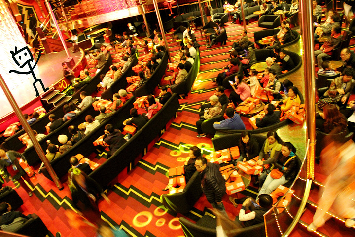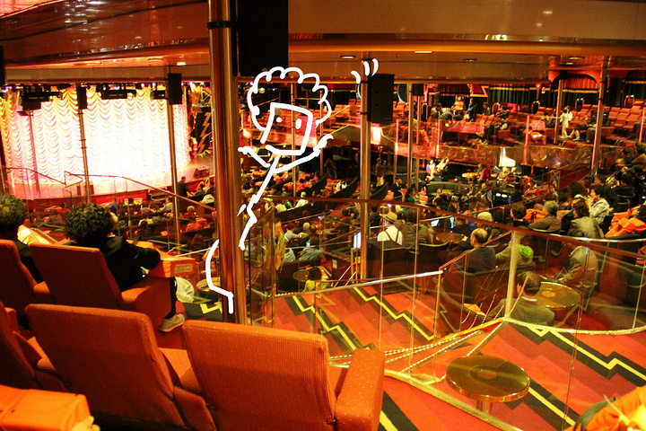 【苔丝剧场】9层船尾,娱乐部的很多活动都在这里完成的,每天活动都不一样,下午的时候还会有职员教大家跳舞,还有“68888元大奖的宾果游戏”在这里开奖;