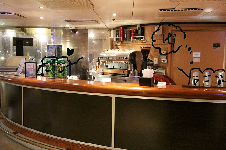 【澳拜客咖啡吧】10层船尾,和丽多自助餐厅是连着的其实,另一层是通向甲板的,这里有另付费的咖啡和糕点等,价格不等;