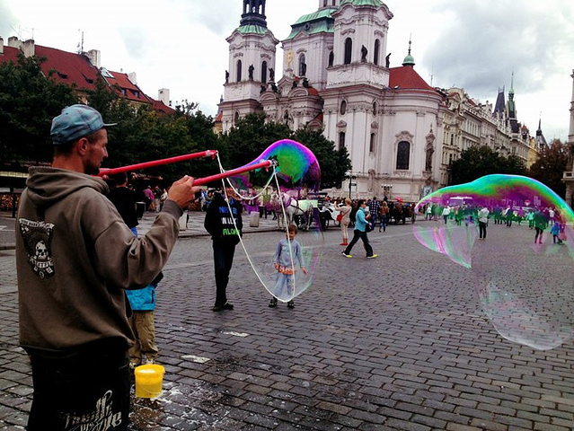 最后一天在布拉格的日子,就这样到来了。醒来时听到清晰的雨声,有些失落。用早餐时遇到了一位来自上海的青年男士,独自来旅行,和我们交流了一下布拉格一日游的线路,我们推荐他先去城堡区,再到查理大桥、小城广场和老城广场,并且对今天天气不给力表示惋惜,因为天气不好的话,登高也看不清什么了。神奇的是,当我们整理好行装退了房走出旅馆一看,雨居然停了!感谢苍天!下过雨的布拉格气温下降,有些冷,需要穿上风衣外套了。今天的主要任务是在中午12点听天文钟敲响并看到那12门徒木偶出现^_^