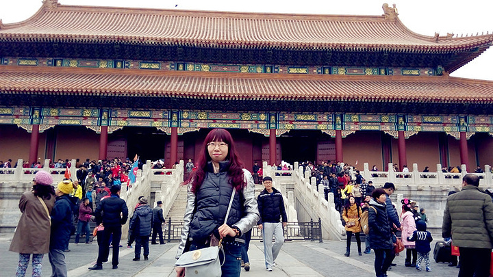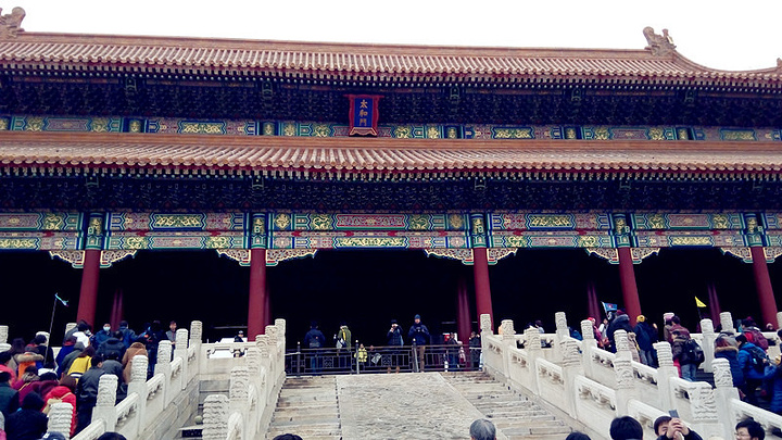 经过长长的排队终于买到门票后,进入故宫,故宫门票40元/人。【故宫位于北京市中心,也称“紫禁城”。这里曾居住过24个皇帝,是明清两代(公元1368~1911年)的皇宫,现辟为“故宫博物院”。故宫的整个建筑金碧辉煌,庄严绚丽,被誉为世界五大宫之一(北京故宫、法国凡尔赛宫、英国白金汉宫、美国白宫、俄罗斯克里姆林宫),并被联合国科教文组织列为“世界文化遗产”。】。北京当天的气温非常的冷,下午还迎来了2015年的第一场雪,但是这些并不影响游玩人们的激情,故宫里还是人山人海,随时被人流挤来挤去,不能不感叹首都就是首都啊!!
