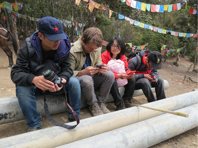 吃完早餐,就出发雨崩了。那个路烂到。。整个人可以弹起来。。。而且旁边滚下去就是浑浊的澜沧江。。。我很好奇它为什么到了版纳会那么绿,在这里会那么浑浊。。。