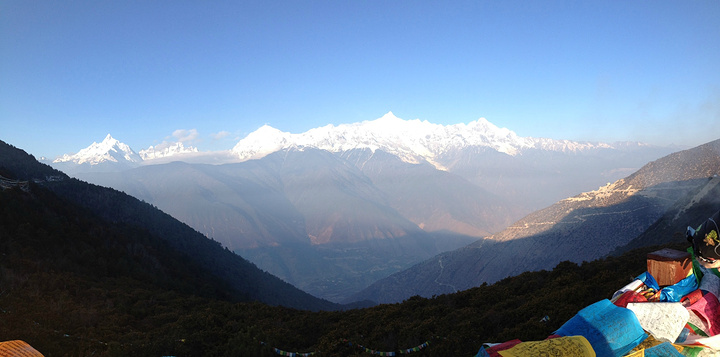 对梅里雪山也就能这样远观,因为他是被法律规定不能攀登的。至于原因和来龙去脉,有兴趣的亲可以找《卡瓦格博》这部纪录片看看。