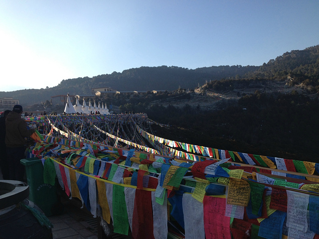看完日出就去到另一边的观景台,这里可以看到无数由藏民挂上的五色经幡,还有虔诚的藏民在向着梅里雪山跪拜祈祷。
