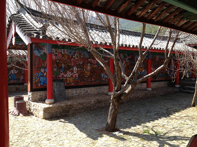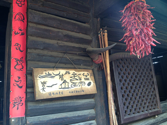东巴壁画。下面石碑有中文解释,只看那些画还是有点看不懂。只能赞叹古时人们的艺术造诣很是精湛。