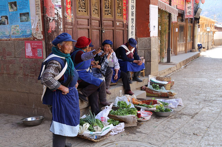 白沙古镇,还能看到传统居民在这里卖菜聊天晒太阳。