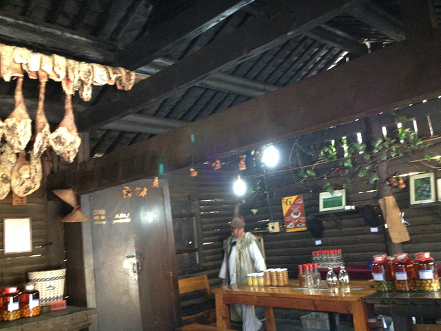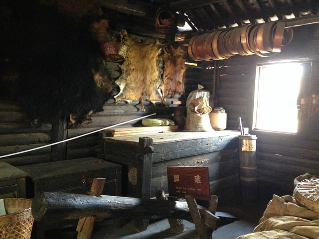 民俗园。这里算是纳西民族的庭院。在这个屋里尝了他们自制的甜酒,一元一小杯,酒味很浅,蜂蜜味比较浓。喜欢的人可以买整瓶回去。