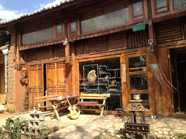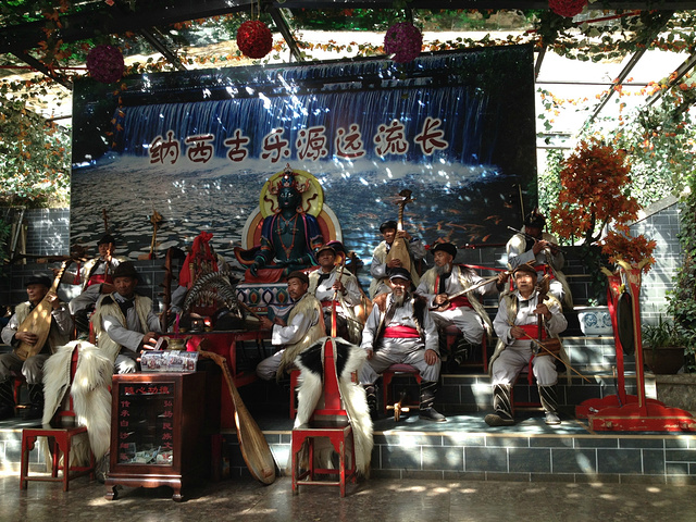 这里是一群老人家为游客展示东巴古乐,免费的,据说还上过央视报道。可惜这时是淡季,没几个游客,老人家们只演奏了一段。来了几个人上去装装模样拍个照就走了,让我这想好好听听古乐的小朋友都不好意思留下。