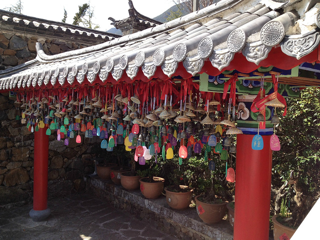 在这边几个景区都能看见这些木制许愿风铃,风吹过,听着木头相撞的声音,感觉很纯朴。