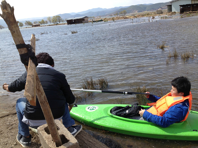 划皮艇的人回来了,上不了岸,领队小朱正帮忙把他们拉上岸,好 MAN 哦~