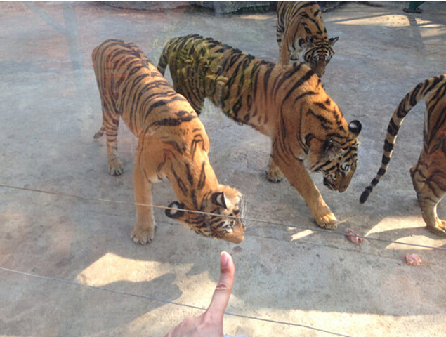 我本身很喜欢老虎,有护栏我就敢很近距离看着它们。