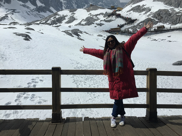 3月14日也是我们最后一站“玉龙雪山”又是一大早就起来,坐车赶往玉龙雪山(打车70元,进山费105,20元保险,大索道180,四人共1220元)。在车上远远就能望见玉龙雪山的壮丽和秀美,确实很漂亮。经过一番排队和等待我们终于坐上索道上山了,在索道上可以观赏到很美的景色,上山感觉更不一样了,可是因为高海拔的原故我的头会感觉微微的疼痛,很不舒服。不过看见这么美的景色还是先忍忍吧,呵呵。