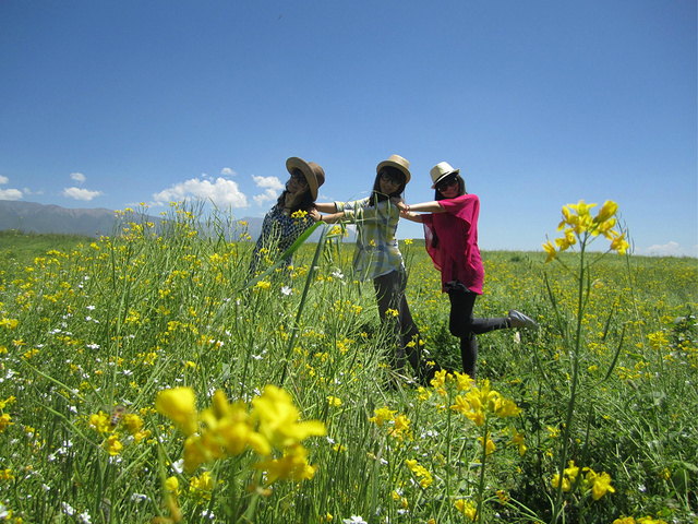 油菜花并不稀奇,很多地方都有,但是门源县的油菜花和南方油菜花完全不同。西起青石嘴、东到玉隆滩、北到与甘肃交界的冷龙岭、南到大坂山,门源油菜花绵延近百公里,放眼望去,整个油菜花田犹如金黄色的大海一眼望不到头,在高原的蓝天白云和雪山的映衬下,有一种铺天盖地的大西北气概。