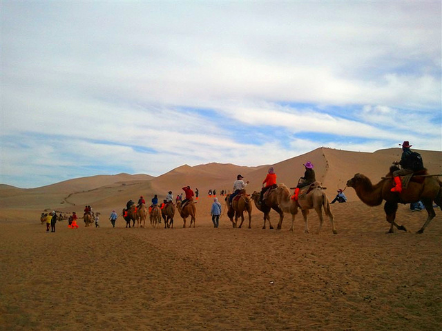 “ 鸣沙山-月牙泉”风景区,位于敦煌市区以南约5公里处,来这里,观赏黄沙与清泉相伴为邻的奇景、爬一爬鸣沙山、骑一骑骆驼,感受不一般的西北大漠风光。游览景区的时间最好是下午,这样即可以避开中午沙漠中的酷热,还能在夕阳西下时,爬到山顶遥望远处的沙海和山下的月牙泉。