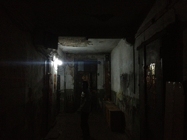 走过一栋老古董,看了半天墙上的“标签”,忽然发现旁边破破的木门居然还能拉开,两个脑残于是大着胆子走了进去。拉开木门的时候,还会发出怪异的声响,那气氛可恐怖了。