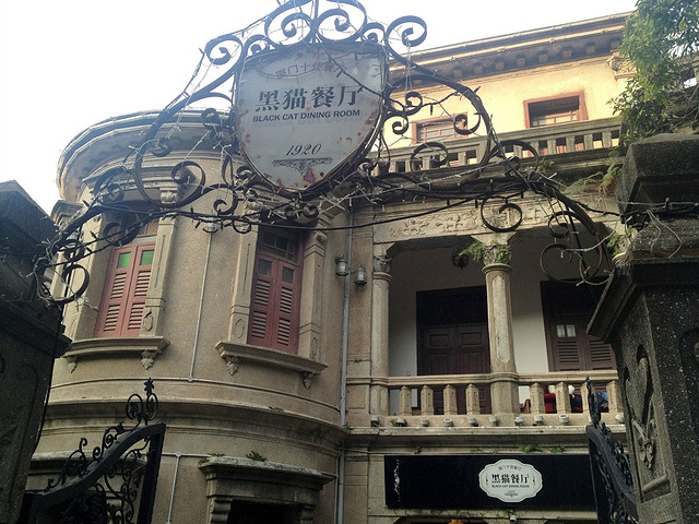 偶遇一家叫黑猫的餐厅,房子老旧,略感沧桑,却别有一番味道,这在宅子当年定是富贵人家。