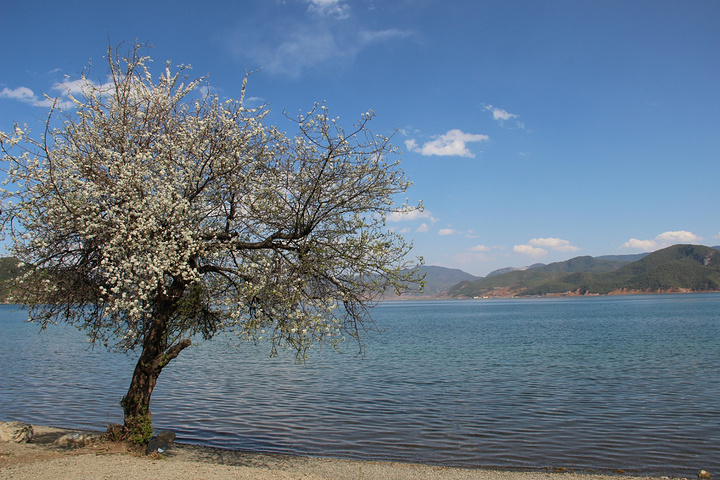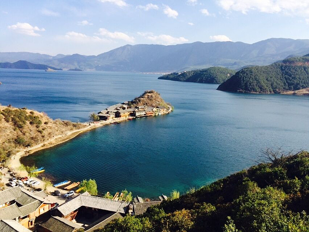 休息了一个小时后,我们就跟着来时的车队一起去玩(100元),4点半出发晚上10点回到客栈。我们先是从大落水环湖开车到小洛水村,这段路程的景色就美到爆!下车后就是了解摩梭族的文化,然后吃饭,最后是篝火晚会。