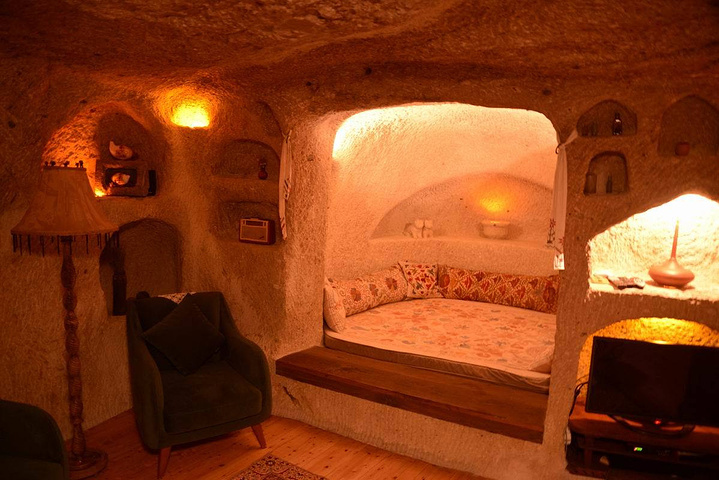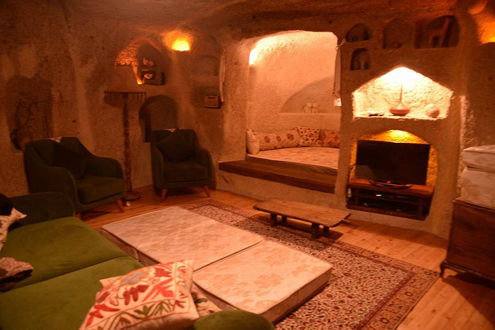 不得不说下这家酒店,作为洞穴酒店来说是非常棒,但是是在太难找,要不是后来的老板带路真的找不到这家酒店。给我100个小时我也找不到。一家酒店就两个套房就是全部我们七个人等于包了酒店这个感觉真的好棒。这张是洞穴的二楼,右边的门进去就是我们女生住的套房,左边没拍到是男生的房间2楼是厨房楼下是房间。照片的正前方 是个大露台可以看到全景,漫天的星星。说真的我还是挺喜欢这家的 如果还有下次我还是会再来这家。说下洞穴给我的感觉,就像是国外版的窑洞,只是说里面设备齐全很大。两个套房费用合计1254里拉。