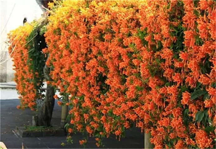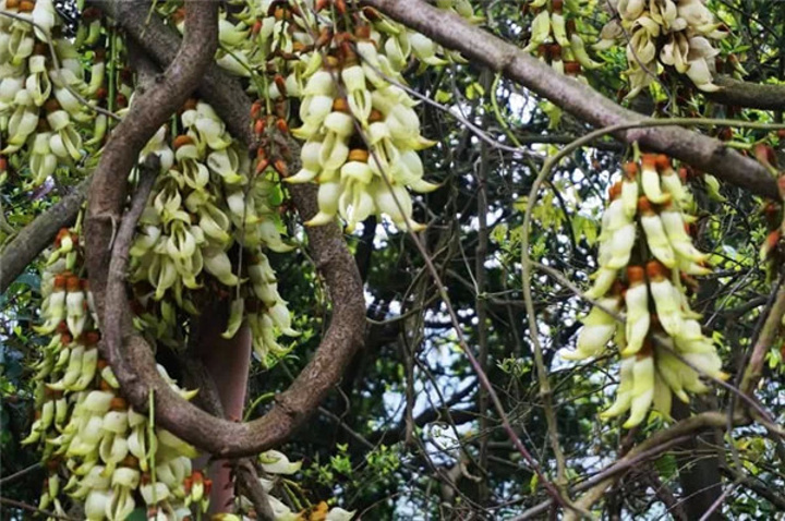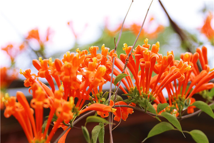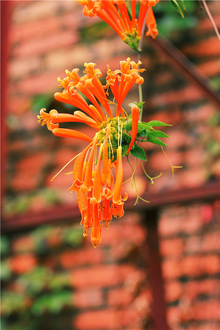 炮仗花是广东人的爱,在春节期间开放,更是寓意红红火火。印象中是第一次见。观音山的炮仗花在矮马观赏基地,自然生长,攀沿在棚顶,待到花落叶长,必是一处阴凉。更让我惊奇的是,与炮仗花相伴的是一株无花无果的无花果和一株极高极壮却也无花无果的火龙果。只是,等炮仗花大肆开放在你眼里时,你还会发现其它么?我想会的,因为它们就像三剑客,与马儿相伴,却又自成一章。