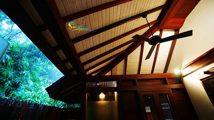 房间里的床舒适度是完全可以保证的,剩下考察的就是隔音问题;下午的时间段,偶尔有路边的电瓶车的行驶声音,除了屋外雨打芭蕉的声音,就是虫鸣的声音,热带雨林的密林隔绝的其他房间完全听不到任何声音。