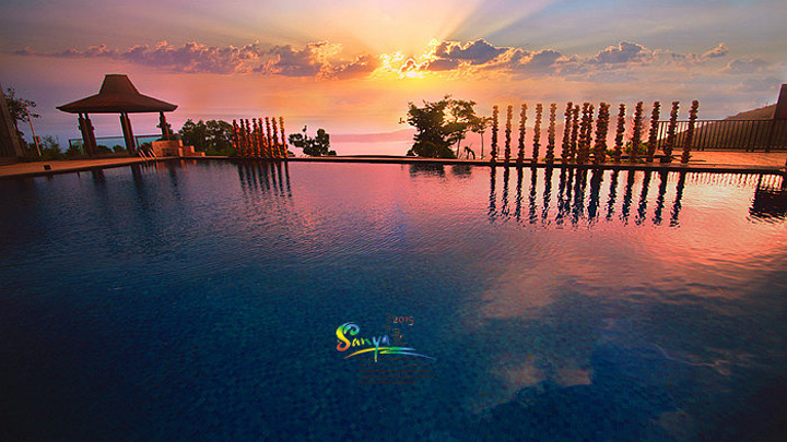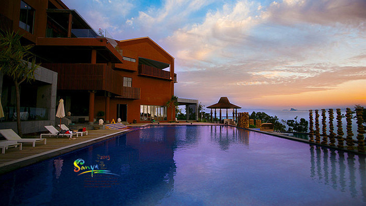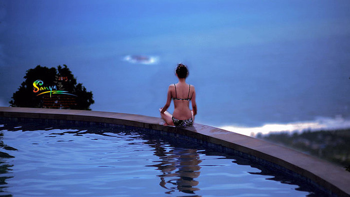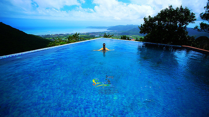 无边际泳池是所有高级酒店的亮点,而这里的无边际泳池更有着无与伦比的海天一色的山景与海景。所以拍泳池里的各色美女是必须的项目……