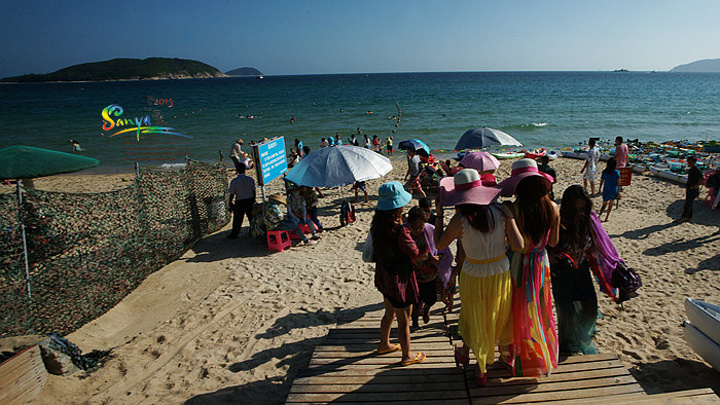 逛完酒店的沙滩,收获也不大,没有我想象中的成群的比基尼美女;那么三亚还有哪里有这种地方可以拍到呢?毫无疑问是沙滩浴场,于是迅速出门打车赶往海滨浴场。