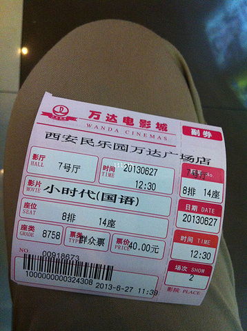 因为回去的火车票是晚上10点多,所以我们得中午前就退房,于是我们想到去看电影。因为民乐园万达影城就在火车站那条路上,两者只有2站路,很近,里面又有空调。西安实在是热啊啊。正好《小时代》27日上映。所以我们去看了。然后顺便逛了下万达百货。这样下午和晚上就都有着落了,而且不会很无聊。