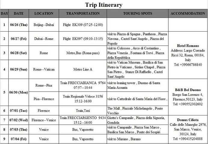 说道行程的制定,我一定要大赞去哪儿网,真是“只有你想不到,没有它做不到”,这里绝没有广告嫌疑,只是想把这份便捷推荐给大家。去哪儿网网可以自己制定行程,每个地方,每个景点都有详细的说明和tips,再加上智能优化功能,让景点的选择更加合理,少走很多冤枉路,而且最终可以生成送签的excel格式,可以说更加便捷。