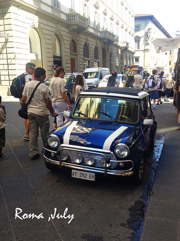 罗马的大部分街道都很窄,为了适应窄小的车道,小型车尤其盛行,特别是smart,当然还有这辆mini mini,感觉萌萌哒~