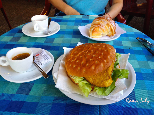 今天的行程先从一顿美美的早餐开始,清晨伴着和煦的阳光,完全放松的状态很是安逸。既然到了意大利,纯正的牛角包和espresso是必须要尝试的,espresso果然浓缩,像烧糊了一样,开始喝真不习惯,不过这东西越喝越上瘾,导致我俩回来就好上了这口~