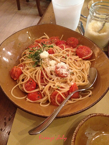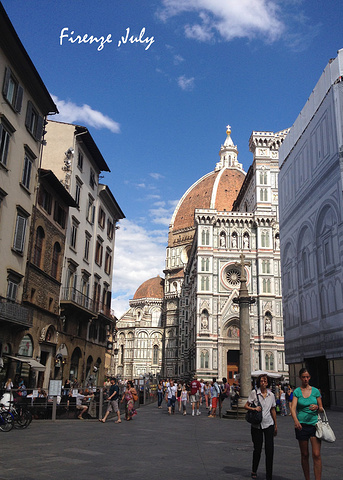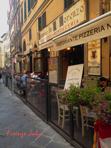 折腾到酒店已经差不多到了中午,坐在火车上就开始憧憬佛罗伦萨的T骨牛排了,现在不去觅食,等待何时?酒店楼下就是一条热闹的街道,有很多饭馆,还是老规矩,随便选了一家。这家店很合适,中午提供牛排套餐,一份前菜加一份牛排才20几欧,整块的T骨牛排,口感嫩滑,原汁原味,吃得太过瘾了!根据去哪儿前辈们的经验,一般一份牛排两个人吃没问题,我俩觉得肚子很饿了,再加一份意面吧,最后真的是吃不了,牛排份量很大,牛肉也很实在,以亚洲人的胃口,这菜量绝对富裕。我俩还被服务员误认为是“Japanese”,其实我想说中国人的胃口也不大,看着旁边的欧洲妹子自己吃一份套餐,只能感叹人家不愧长得高!