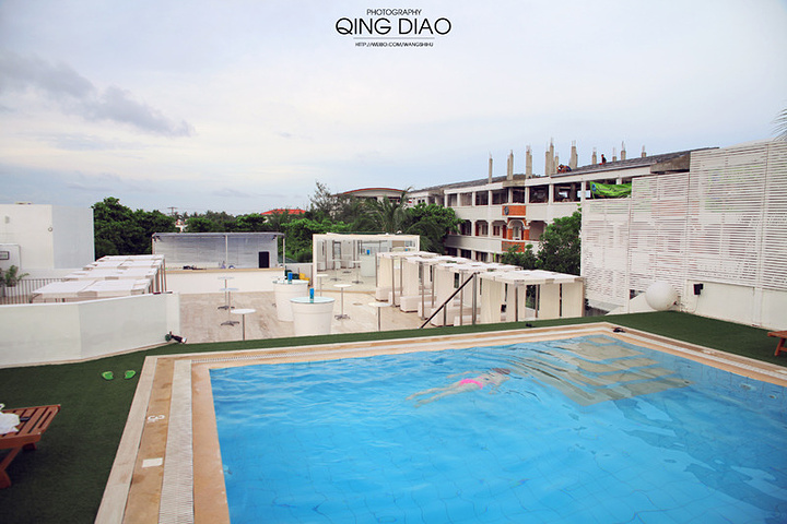 酒店总共分为四层楼,楼顶是酒吧及餐饮还有游泳池于一体的,而且设计全部以白色,看起来比较高大上,感觉在这办个PARTY不错,环境超赞的。
